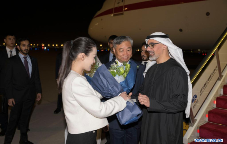 Sheikh Khaled bin Mohammed bin Zayed Al Nahyan, Crown Prince of Abu Dhabi, United Arab Emirates, arrived in Beijing on Sunday for a visit to China.
