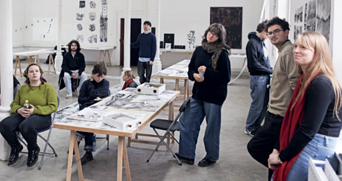 Students present their works for the final evaluation of the Chinese ink painting elective course at the Cambrai Higher School of Art and Communication in Brussels, Belgium, December 19, 2025.