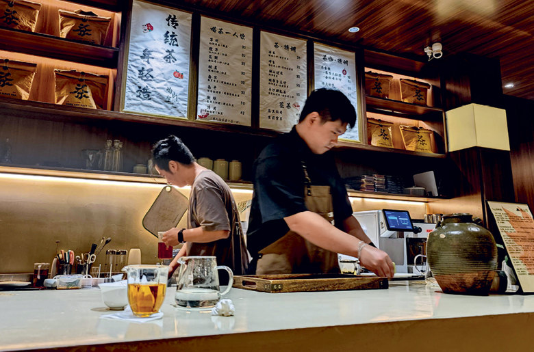At Yushankong, modern tea utensils sit alongside antique tables. The young people who go there not only appreciate these creations, they also have a social experience. “We are not just selling tea, but an art of living,” says Ms. Pan.